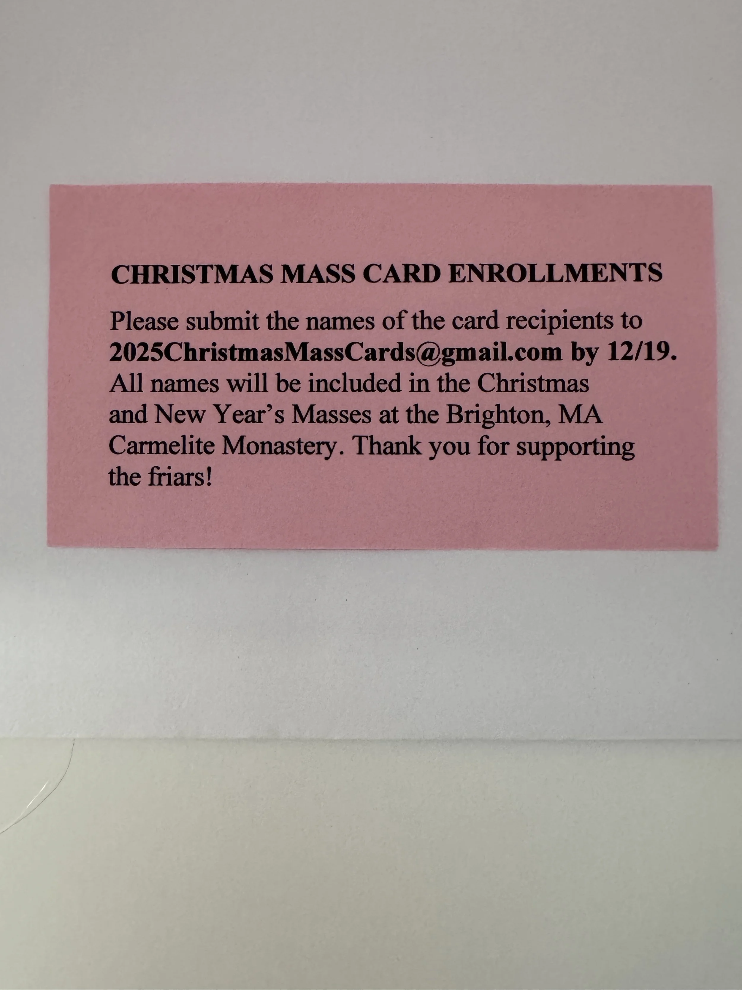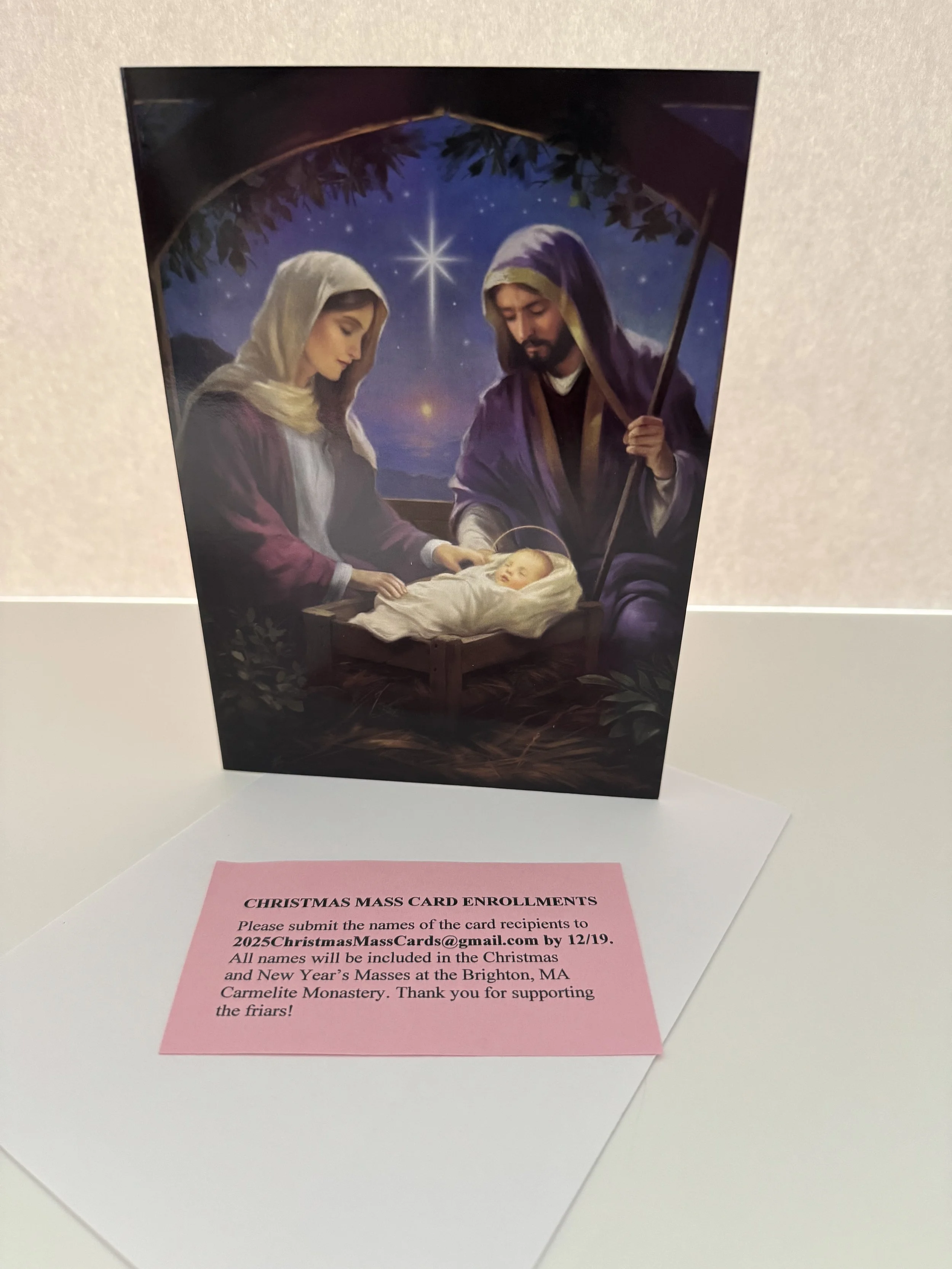 The Discalced Carmelite Friars of Brighton, MA are honored to offer Christmas Mass Cards,